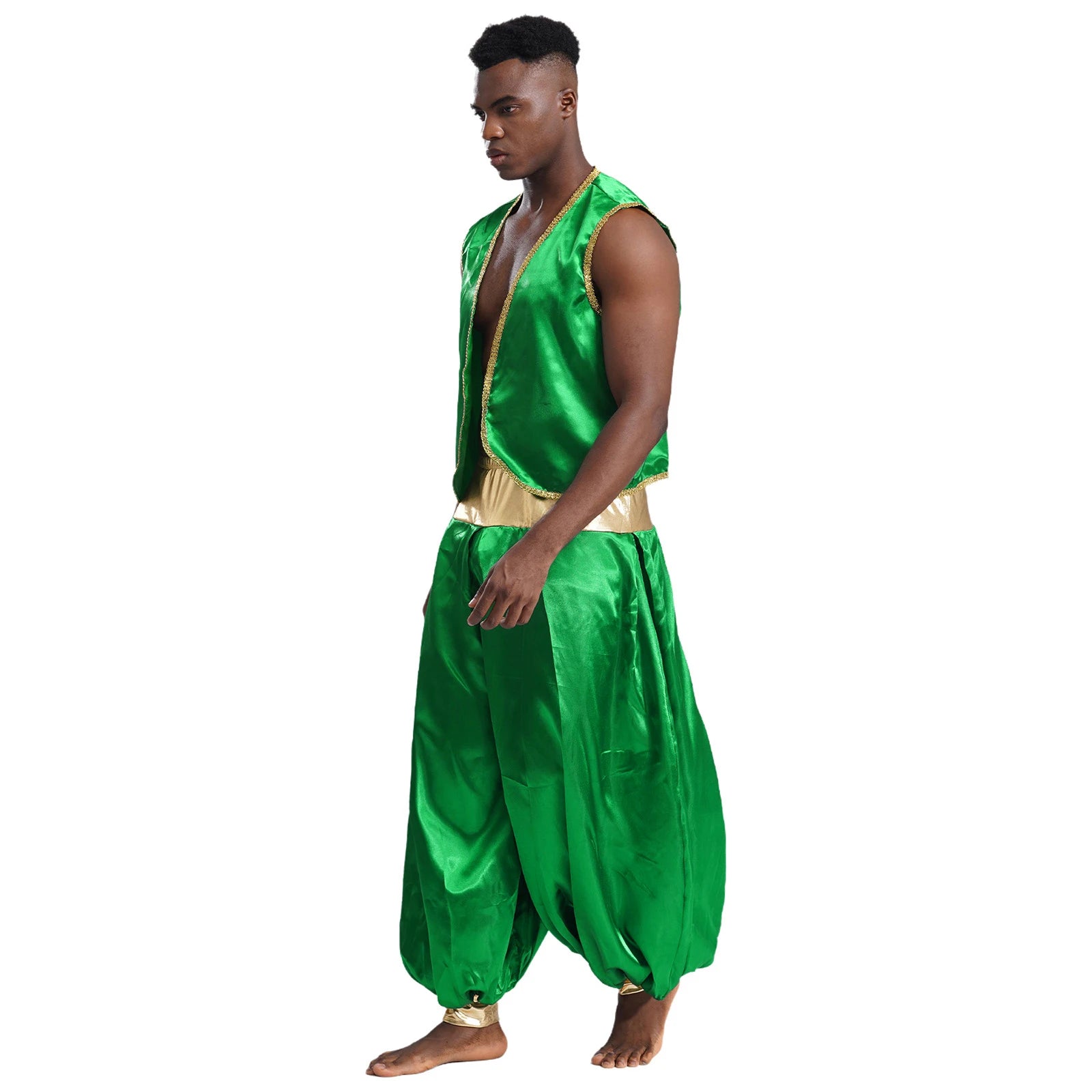 De glanzende accenten en vloeiende pasvorm geven het kostuum een luxe uitstraling en maken het ideaal voor verkleedfeesten en optredens waarbij een oosterse of sprookjesachtige stijl gewenst is.