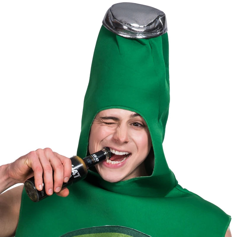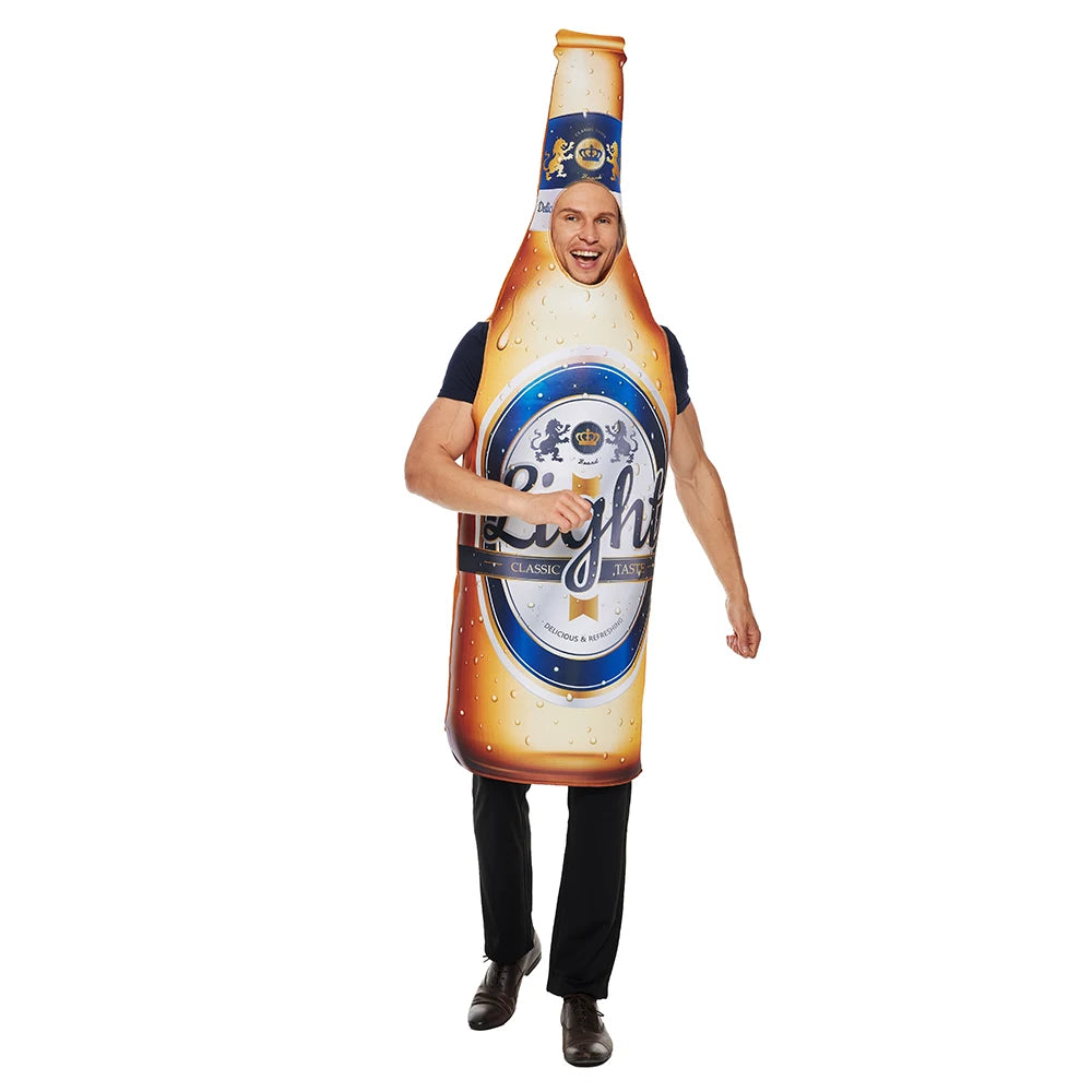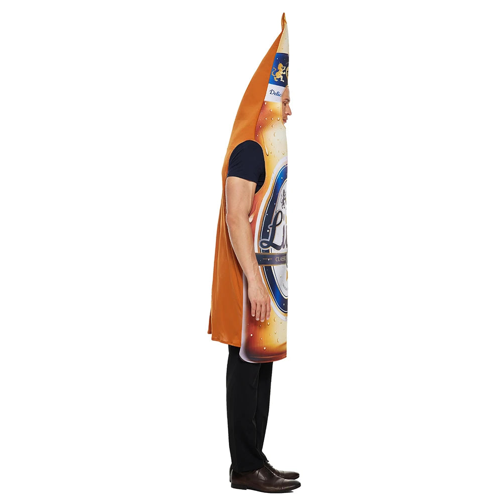 Dit kostuum is uitgevoerd als een ruime jumpsuit in de vorm van een bierfles en is ontworpen om comfortabel over de eigen kleding te dragen. De brede pasvorm bij de borst zorgt voor extra draagcomfort en voldoende bewegingsvrijheid. Het lichte polyester materiaal maakt het kostuum geschikt om langere tijd te dragen tijdens feesten en evenementen.