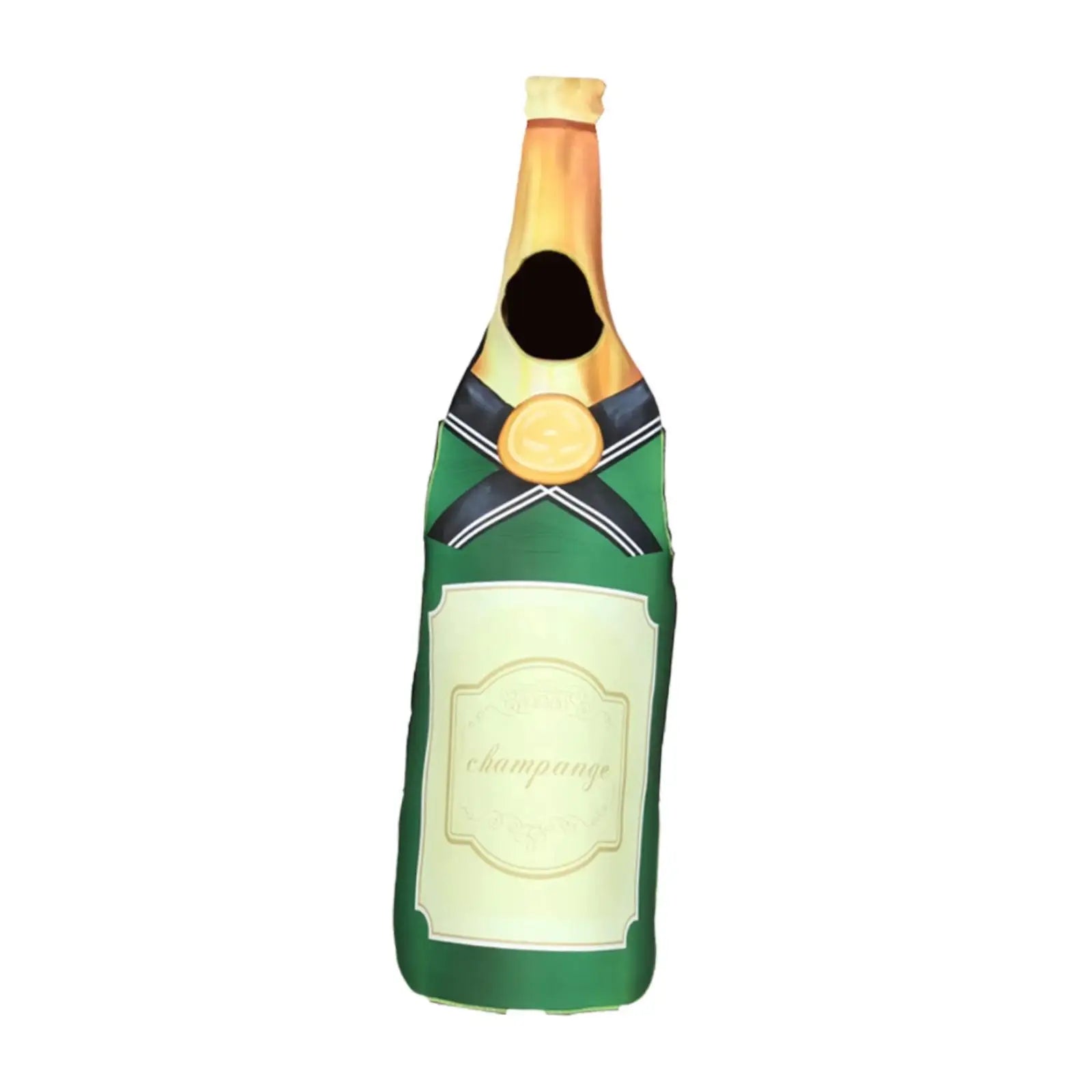 Dit kostuum is ontworpen als een speelse outfit in de vorm van een champagnefles en is bedoeld om comfortabel over de eigen kleding te dragen. Het lichte polyester materiaal voelt prettig aan en is geschikt om langere tijd te dragen tijdens feesten en evenementen. Dankzij het eenvoudige ontwerp is het kostuum makkelijk aan en uit te trekken.