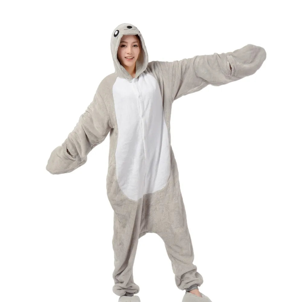 Het kostuum is gemaakt van dikke plush flanelstof die zacht aanvoelt en warmte biedt tijdens het dragen. De stof heeft een hoogwaardige afwerking en behoudt zijn vorm, waardoor het kostuum prettig blijft aanvoelen, ook bij langdurig gebruik. Dankzij het eenvoudige aantrekontwerp is het kostuum praktisch en gebruiksvriendelijk, zonder in te leveren op uitstraling.