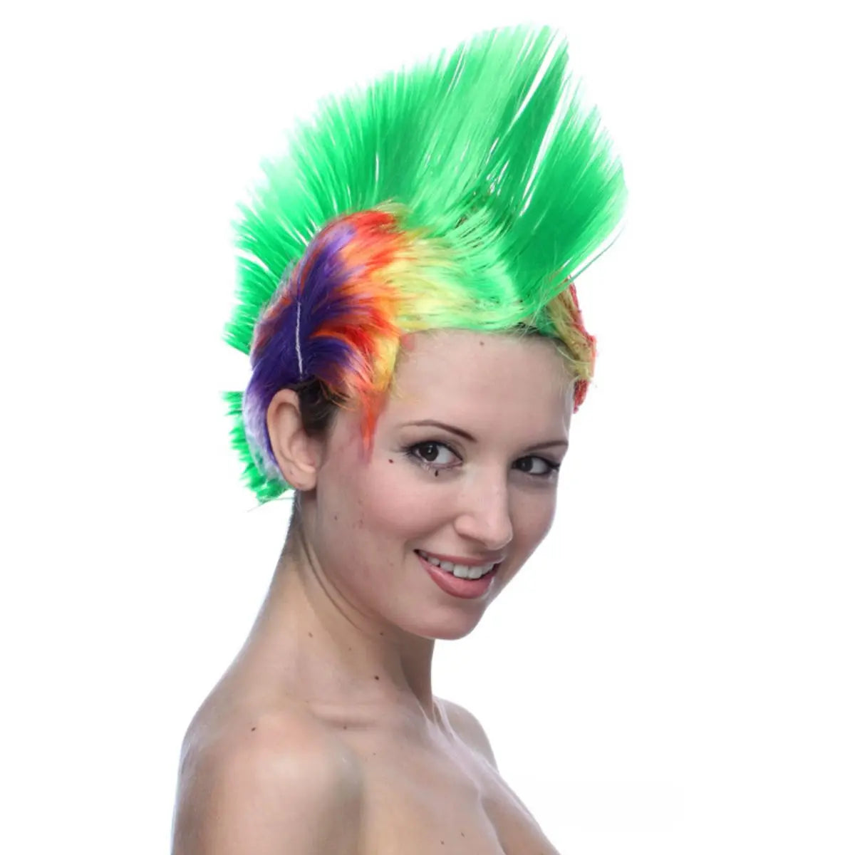 Deze felgekleurde hanekam pruik heeft een rechte haarstructuur en een korte lengte binnen de categorie 4 tot 16 inch. De pruik is uitgevoerd met een average size capmaat en een verhoogde haardichtheid.