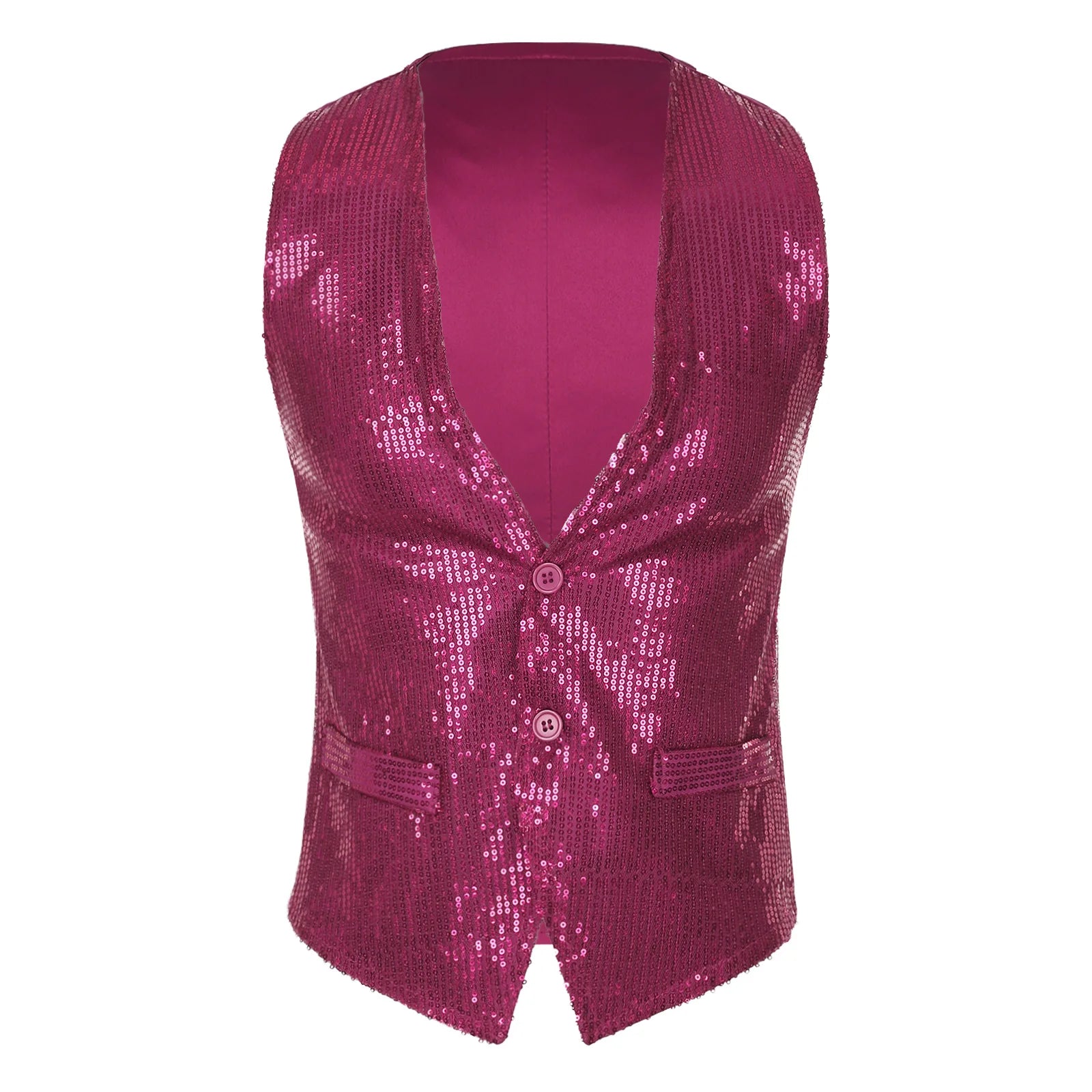 Dit glitter gilet is voorzien van een sprankelende paillettenafwerking aan de voorzijde, waardoor het ideaal is voor iedereen die graag in de spotlight staat. Het mouwloze ontwerp zorgt voor een comfortabele pasvorm en optimale bewegingsvrijheid tijdens dansen en feesten. De asymmetrische afwerking en decoratieve knopen geven het gilet een speelse en stijlvolle uitstraling.