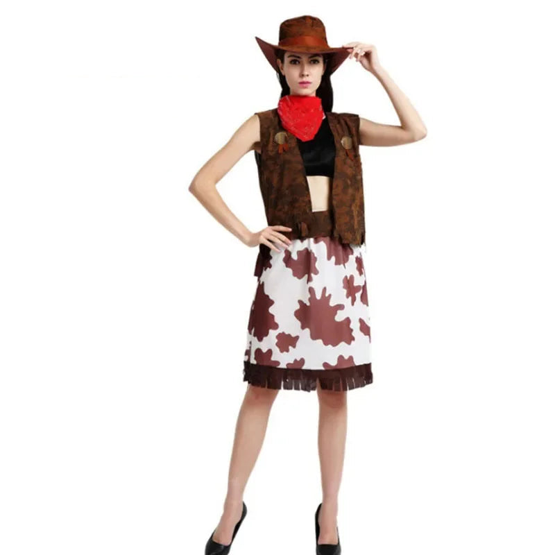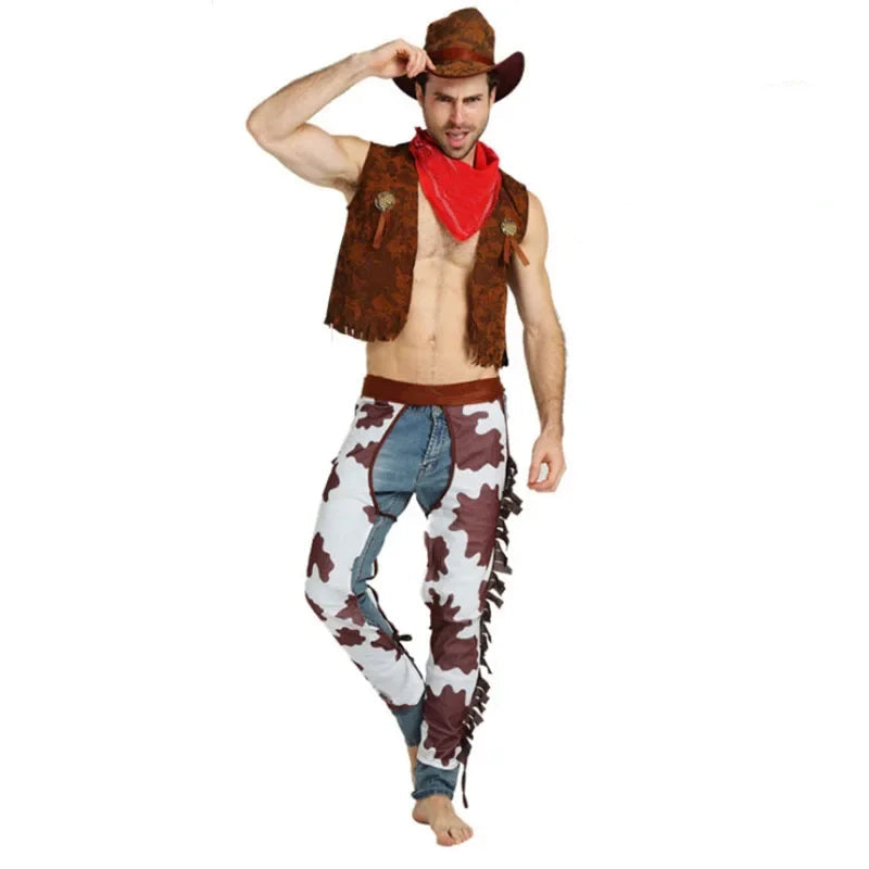 De set bestaat uit een complete outfit met bijpassende boven- en onderstukken die samen zorgen voor een herkenbare en grappige koe-boy uitstraling. Het ontwerp is comfortabel en praktisch, waardoor het kostuum prettig draagt tijdens een lange feestavond. De combinatie van het cowboythema met het koeienmotief maakt dit kostuum ideaal voor wie iets anders wil dan de standaard westernlook.
