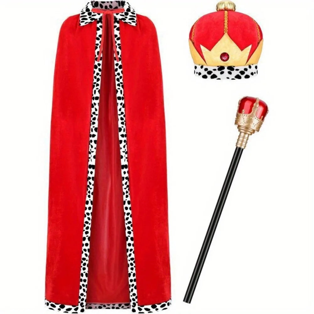 Deze koning’s mantelset bestaat uit een lange cape die speciaal is ontworpen om een koninklijke look te creëren. De mantel valt soepel over de schouders en geeft direct een indrukwekkende en statige uitstraling. Het lichte materiaal zorgt ervoor dat de mantel comfortabel te dragen is, ook tijdens langere feestmomenten.