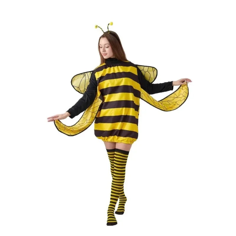 Het ontwerp is comfortabel en flexibel, waardoor je je vrij kunt bewegen tijdens het feesten. De stof sluit prettig aan en voelt licht aan, wat het kostuum geschikt maakt om langere tijd te dragen. De herkenbare bijenuitstraling maakt dit kostuum direct duidelijk en leuk voor zowel solo-optredens als groepskostuums.