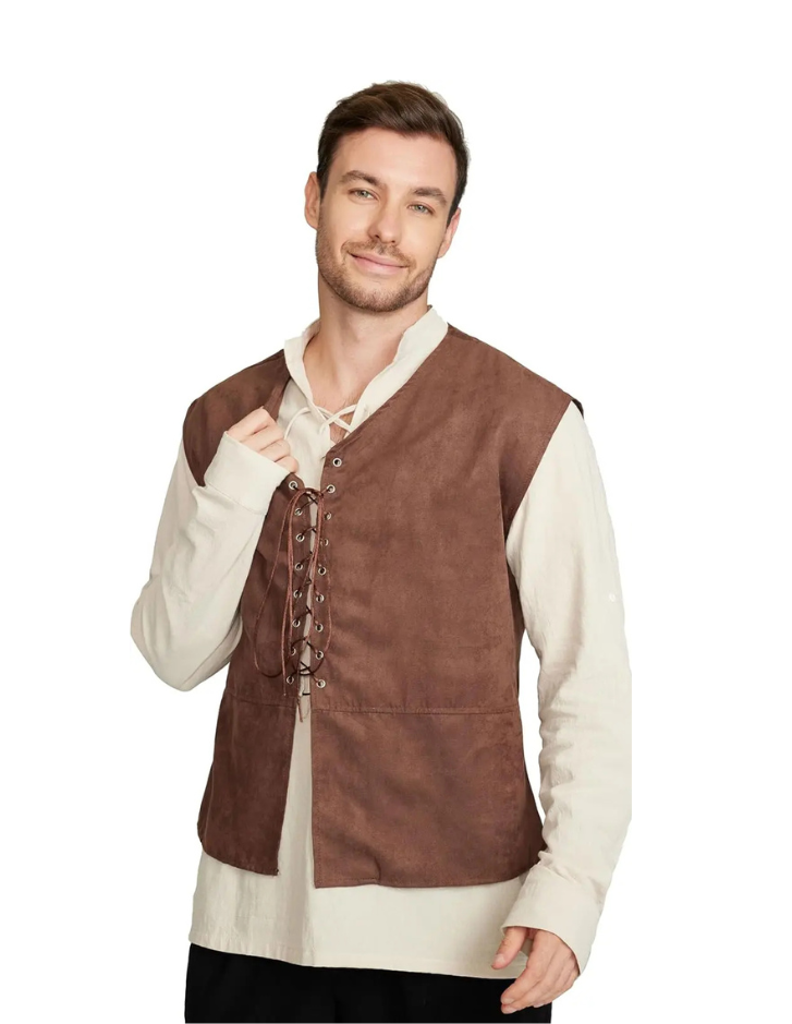 Dit middeleeuwse piraat kostuum is een klassieke en veelzijdige verkleedoutfit die perfect past bij carnaval, themafeesten en rollenspellen. De set bestaat uit een top en een bijpassend vest en zorgt voor een herkenbare, stoere uitstraling.