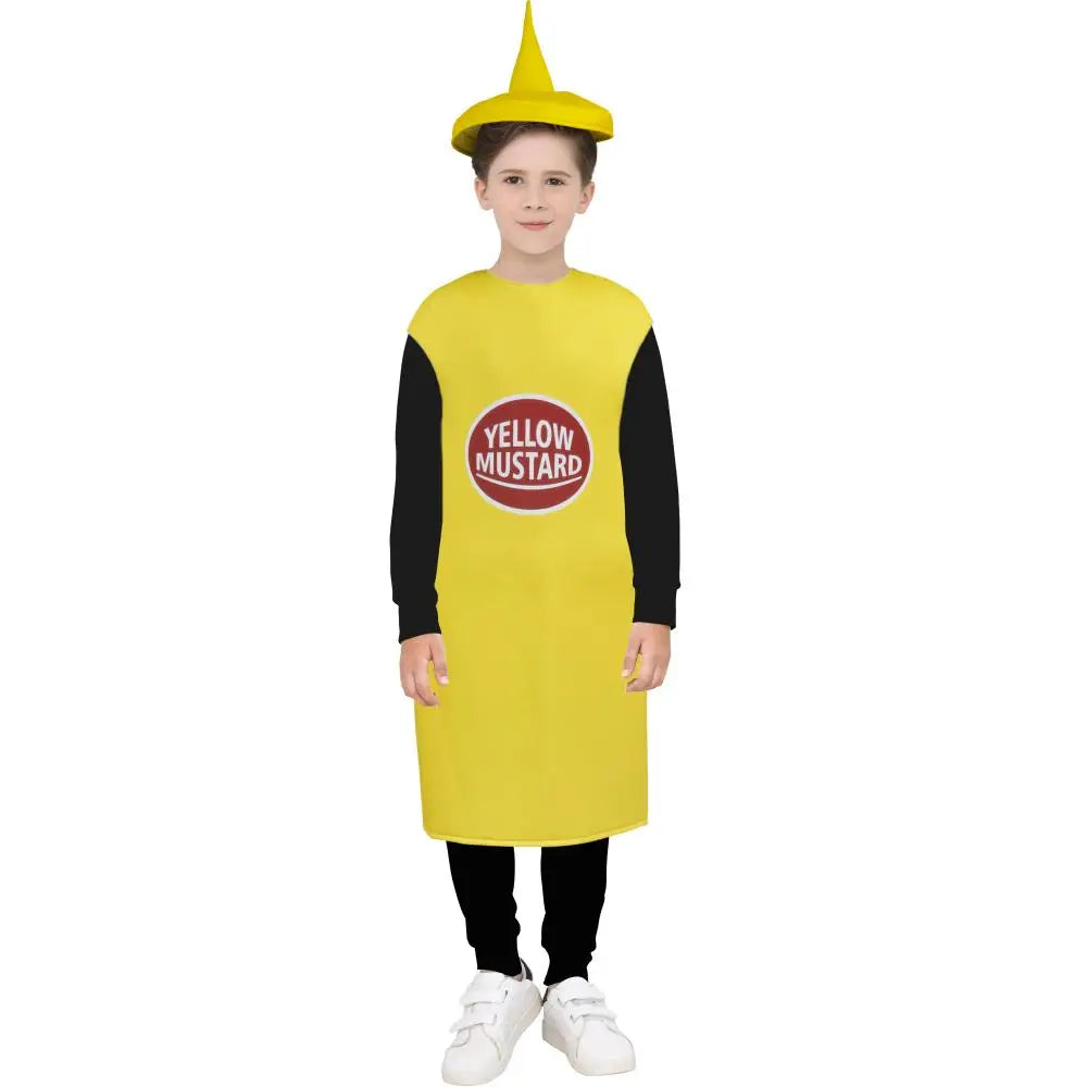 Dit mosterd kostuum is een vrolijke en direct herkenbare verkleedoutfit met een speels food-thema. Het kostuum is geschikt voor zowel kinderen als volwassenen en heeft een unisex uitvoering.