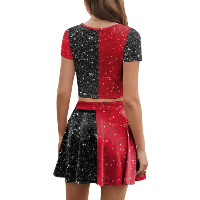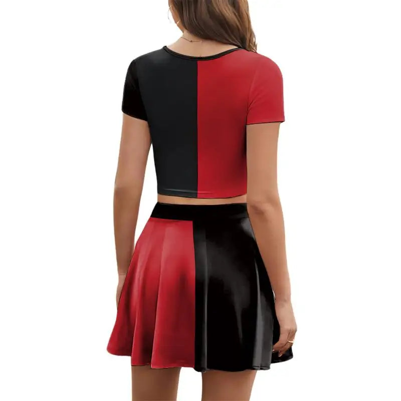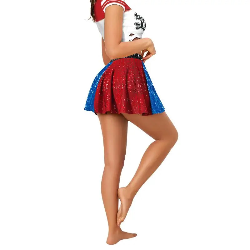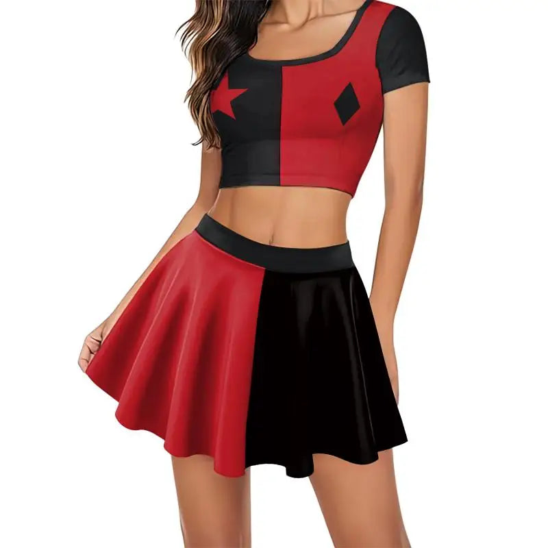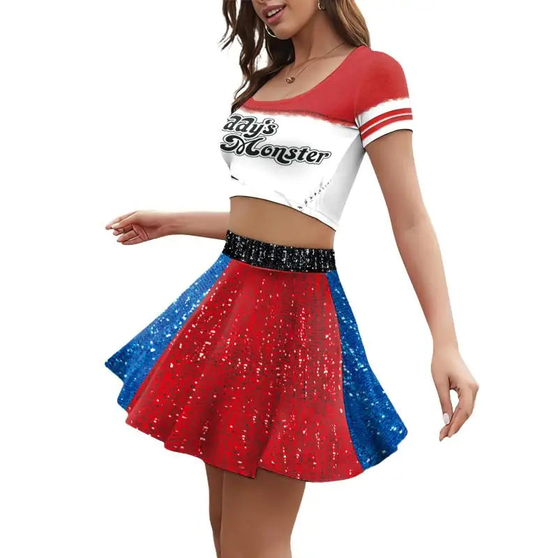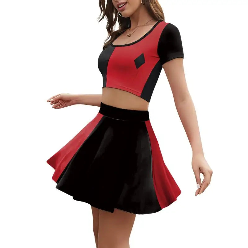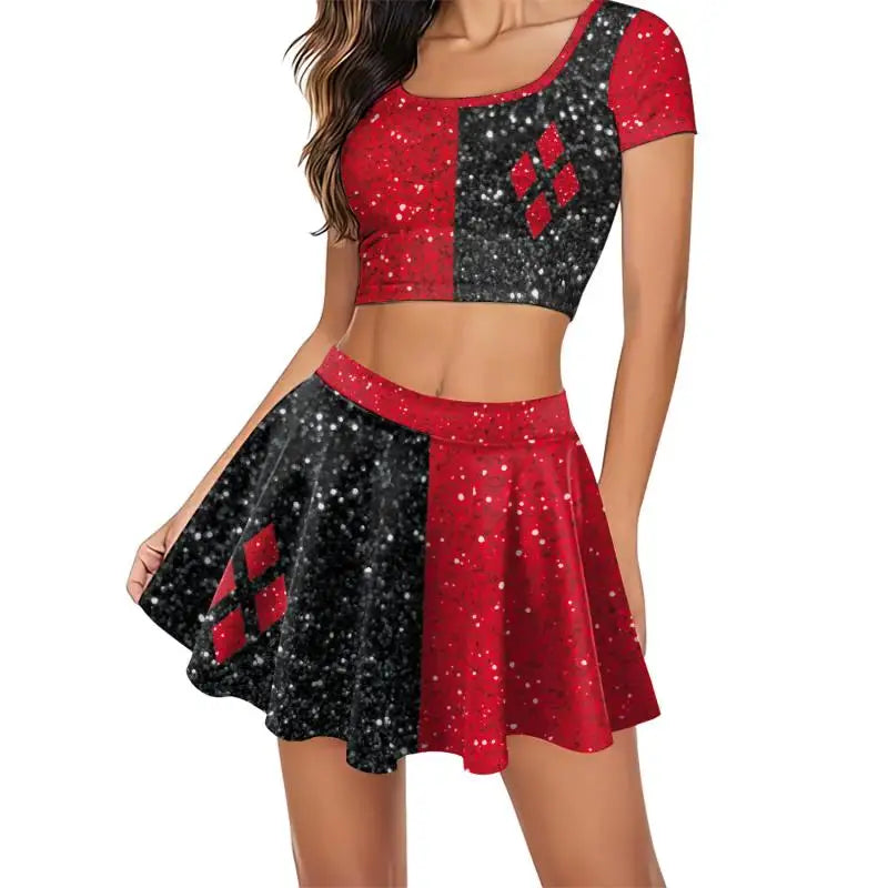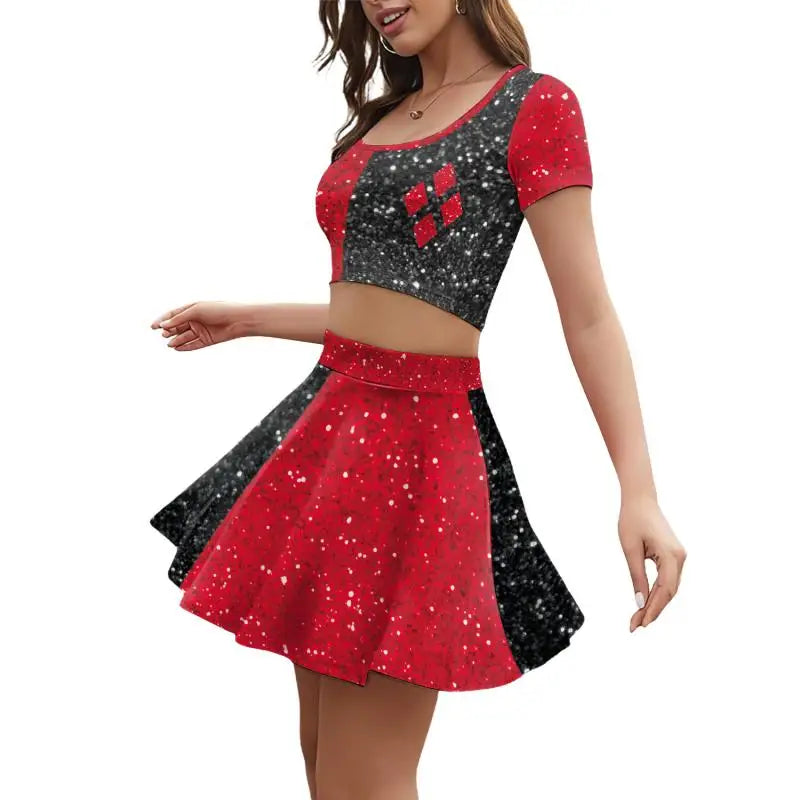 Het kostuum is gemaakt van polyester en elastane en voelt soepel aan tijdens het dragen. De set bestaat uit een top en een bijpassende rok en is uitgevoerd met een knit weeftechniek. Het kostuum is bedoeld voor gebruik als verkleedkleding en sluit goed aan bij een theatrale en expressieve stijl.