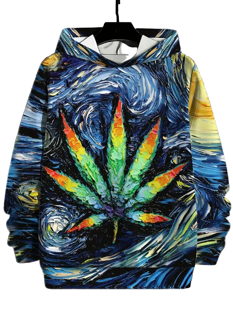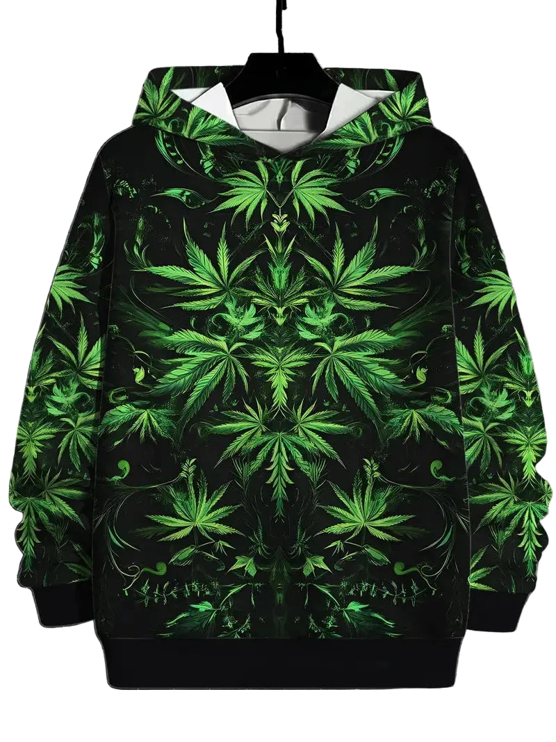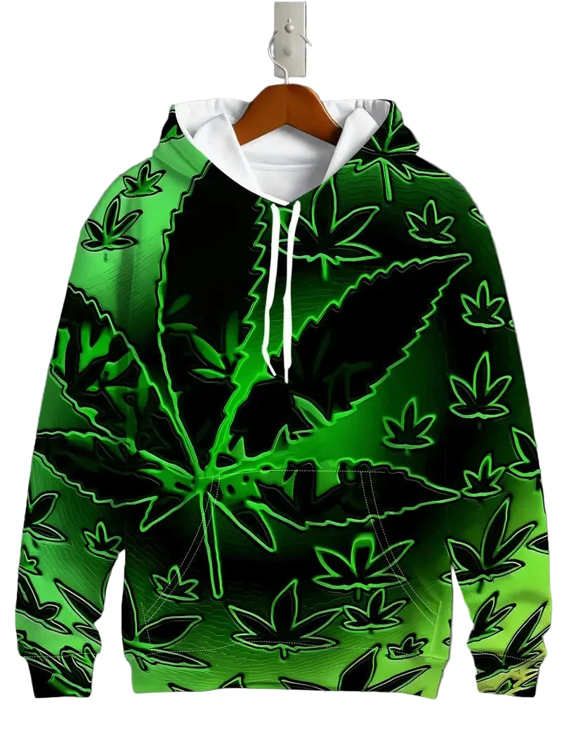 Deze wiet trui is een hoodie met een opvallende 3D-print en een casual uitstraling. De trui heeft een regular pasvorm, een capuchon en is geschikt voor verschillende leeftijden en genders.